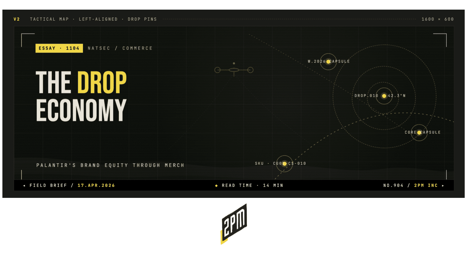 The most instructive commerce experiment of 2026 is not happening at a DTC brand, nor is it happening inside a major retailer. It is happening at store.palantir.com, a merch storefront run by a defense and data company headquartered in Denver, built on Shopify, and operated by a team that has publicly stated its objective is to break even rather than generate profit. That such a store exists is worth noting; that the store has generated more cultural and editorial coverage in eighteen months than most CPG brands earn in a decade is the story worth studying. Palantir is not selling apparel, nor is it selling accessories or flag patches. Palantir is selling a worldview, and the apparatus through which that worldview is priced, scarcity-controlled, and distributed into a community of believers is the same infrastructure that powers Drake’s, Kith, J. Press, and a quarter of a million other merchants around the world.